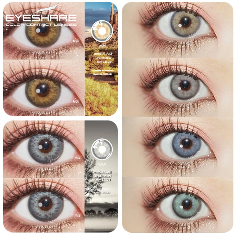 Контактные линзы EYESHARE для глаз, 2 шт., синие, коричневые, красота, контактные линзы, ежегодная косметика, цветные контактные линзы