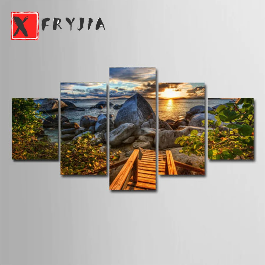 5 шт. алмазов Картина Закат Романтический остров декорации камни в форме ромба сверла Вышивка крестом мозаика Новое поступление подарок ручной работы