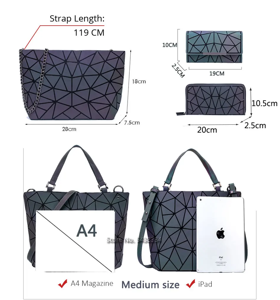 Женская светящаяся сумка Bao, женская сумка с геометрическим рисунком, роскошный набор сумок на плечо, складные сумки-тоуты через плечо, Женский кошелек и кошелек