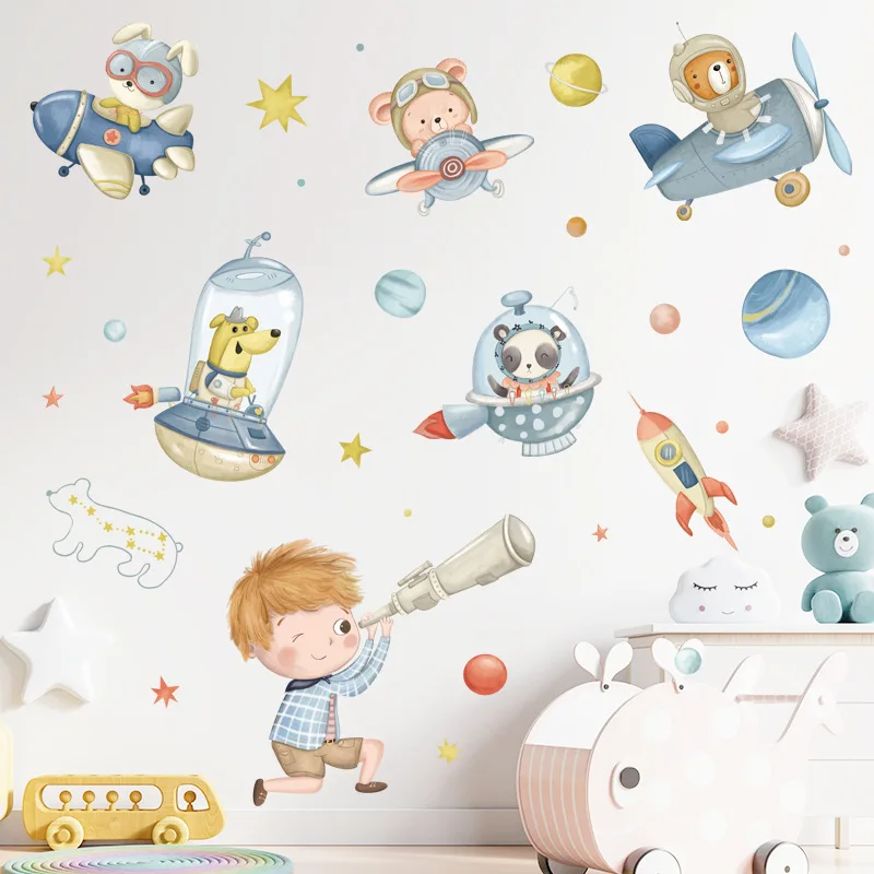 Мультфильм животных пилот детской комнаты настенный Декор астронавт освоения космоса винил ПВХ стены наклейки для украшения дома и детской фрески