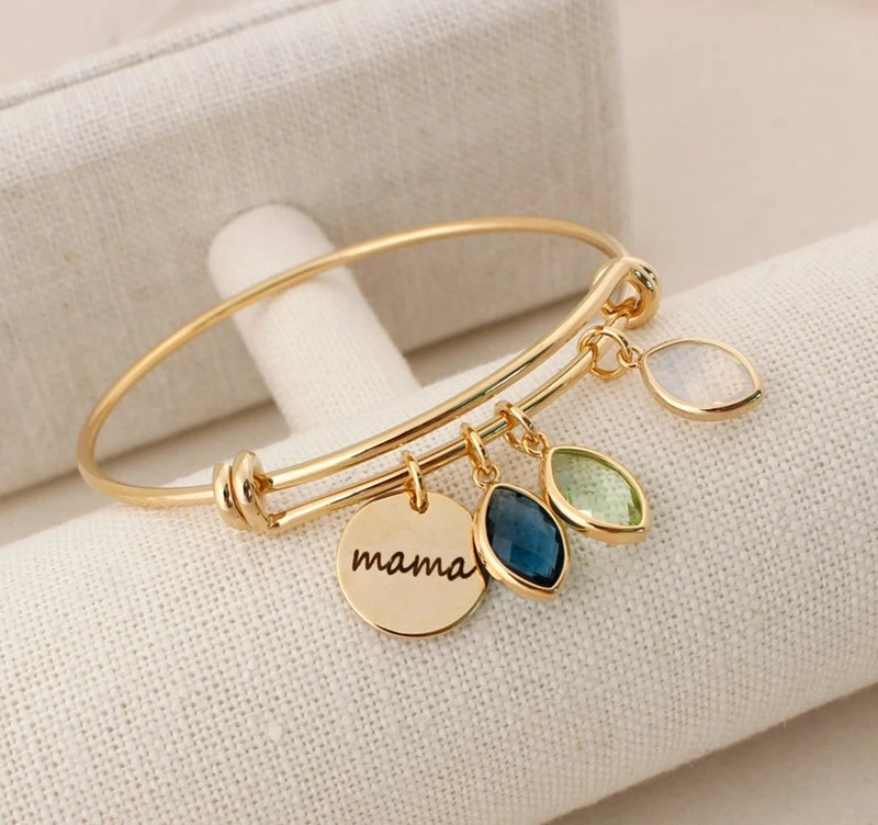 Персонализированные Семейные имена браслет из нержавеющей стали с круглыми подвесками с камнями по рождению на заказ Выгравированные имена браслет подарок для матери