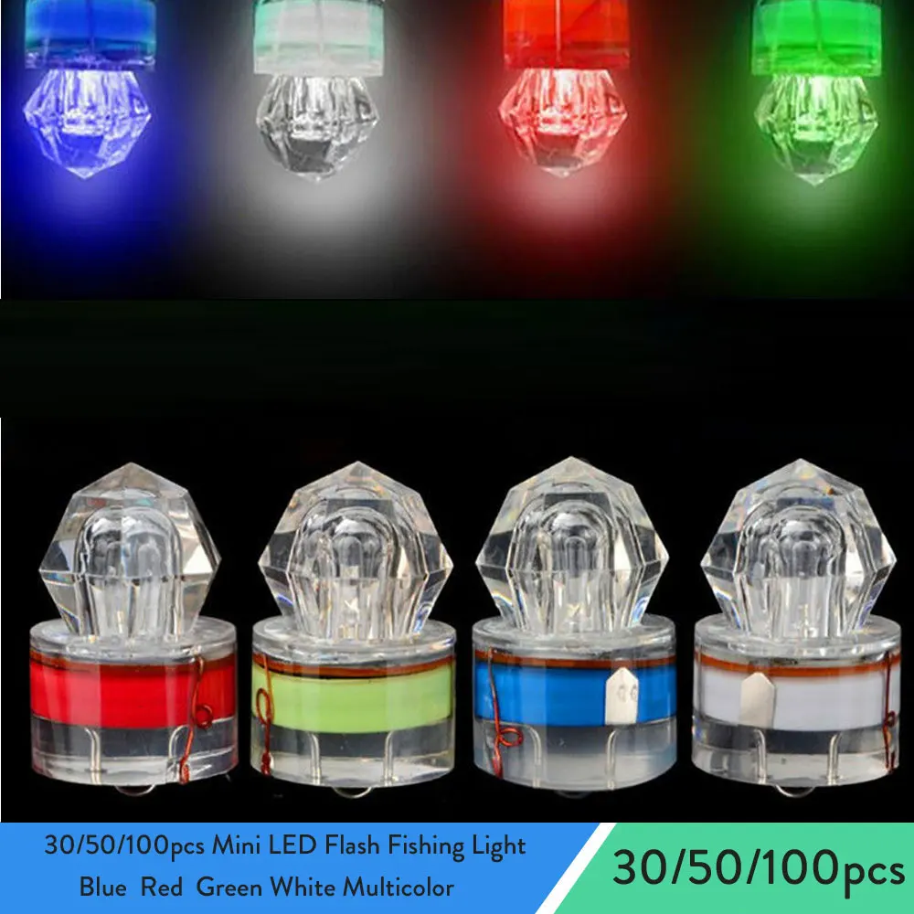 30/50/100 шт мини светодиодная вспышка рыболовный светильник глубокое падение алмаз подводный Водонепроницаемый кальмара Строб наживка приманка для рыбы лампы Ligthting