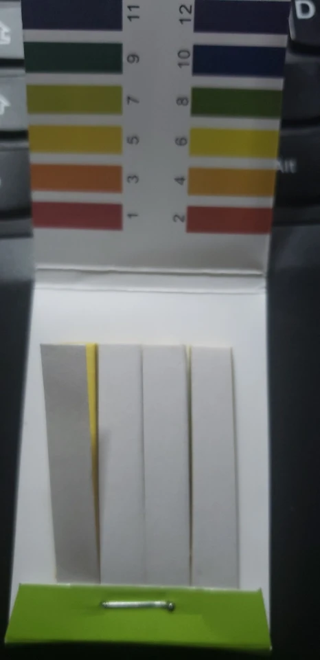 Тест-смужки для рідини працюють. Досить важко визначити яка саме лужність розчину, адже колір змінюється