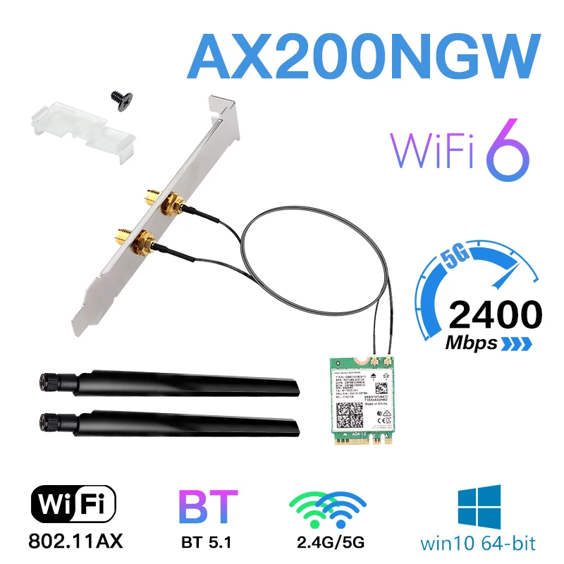 3000 Мбитс WiFi 6 Intel AX200NGW комплект для настольного компьютера двухдиапазонный 2,4 ГГц5 ГГц 802.11AX Bluetooth-совместимый 5,1 WiFi M.2 сетевой адаптер