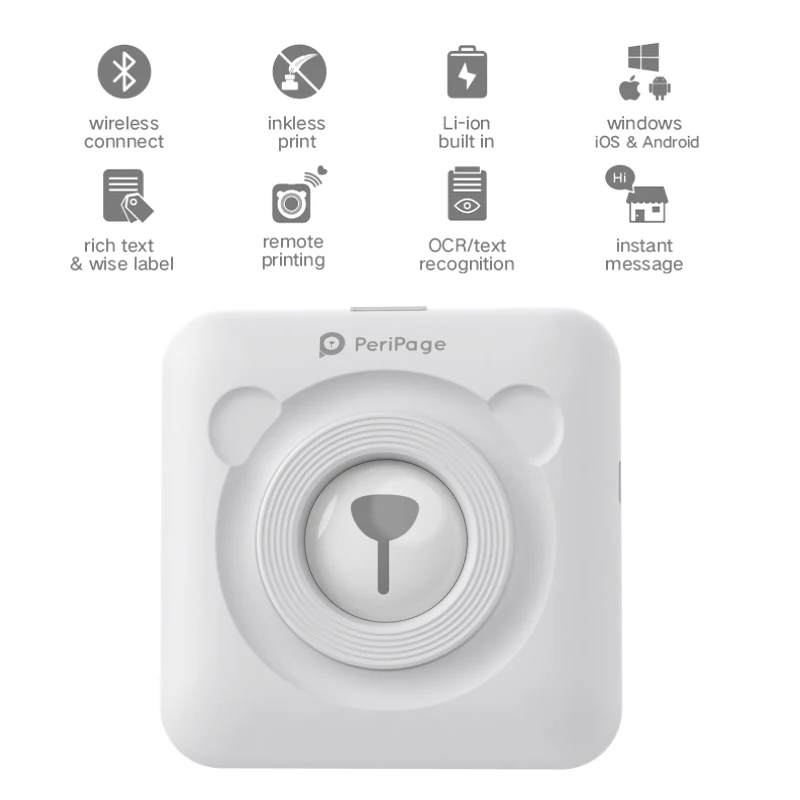 Благодаря технологии термопечати и высококачественной печатной головке вместо чернил используется термобумага, она тише, быстрее и энергоэффективнее, поддерживает быструю зарядку через USB