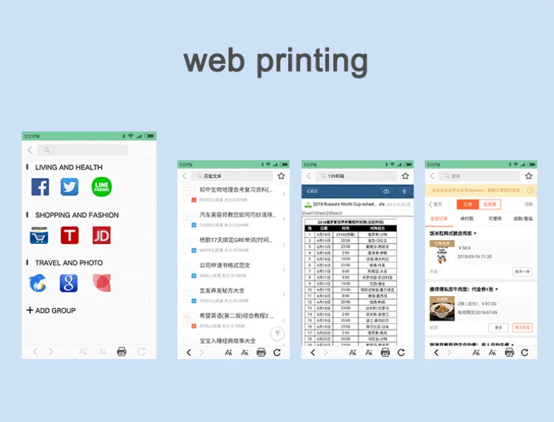 Соединение Bluetooth 4,0, подключается к периферийной странице через приложение для печати на телефоне, без провода, вы можете печатать в любое время и в любом месте