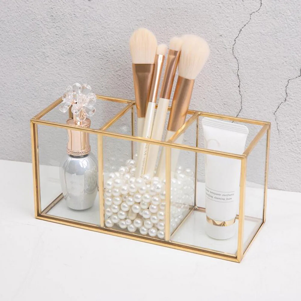 Прозрачный стеклянный ящик для хранения кистей для макияжа Золотой ...