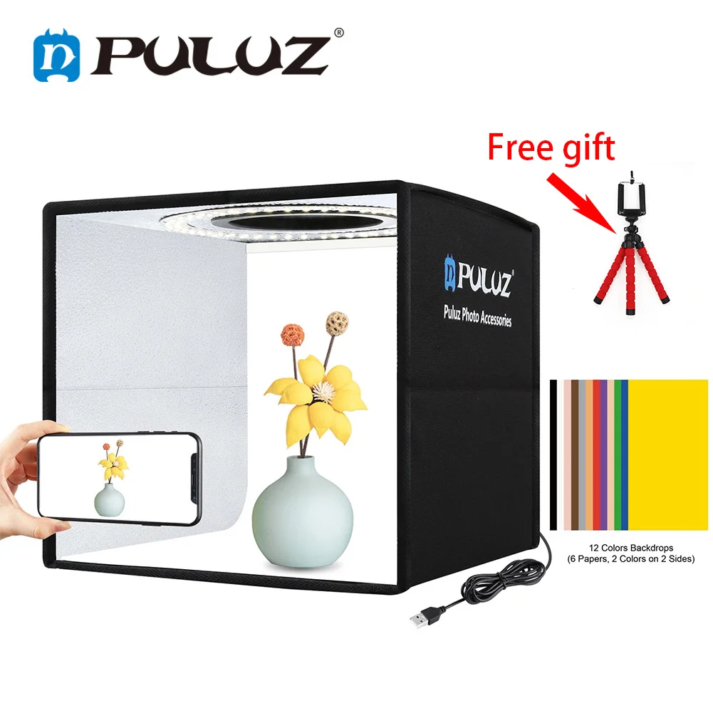 Световой короб PULUZ для фотостудии, мини Настольный светильник тбокс 12 цветов с фоном для фотографии, софтбокс для съемки с кольцевым освесветильник ением