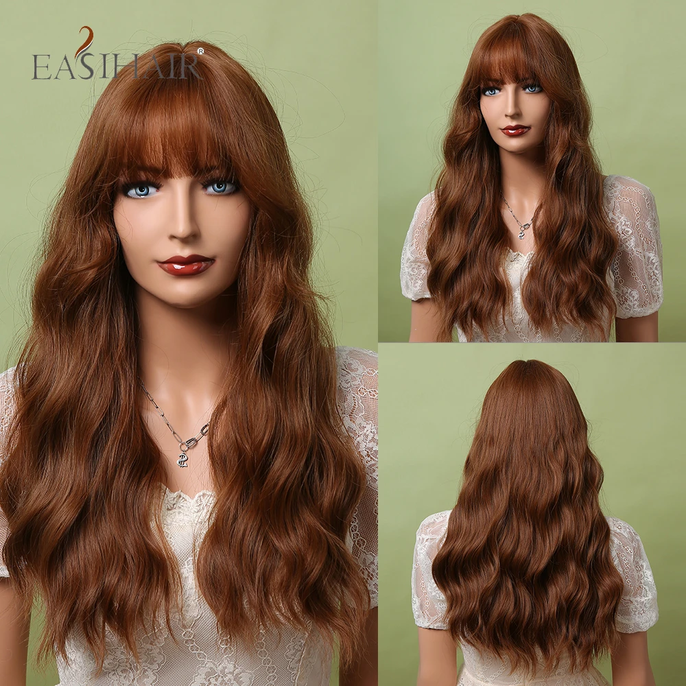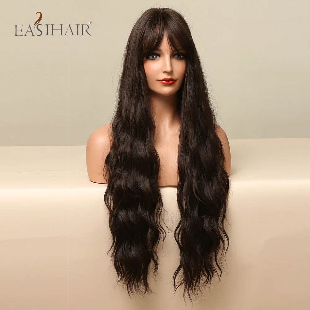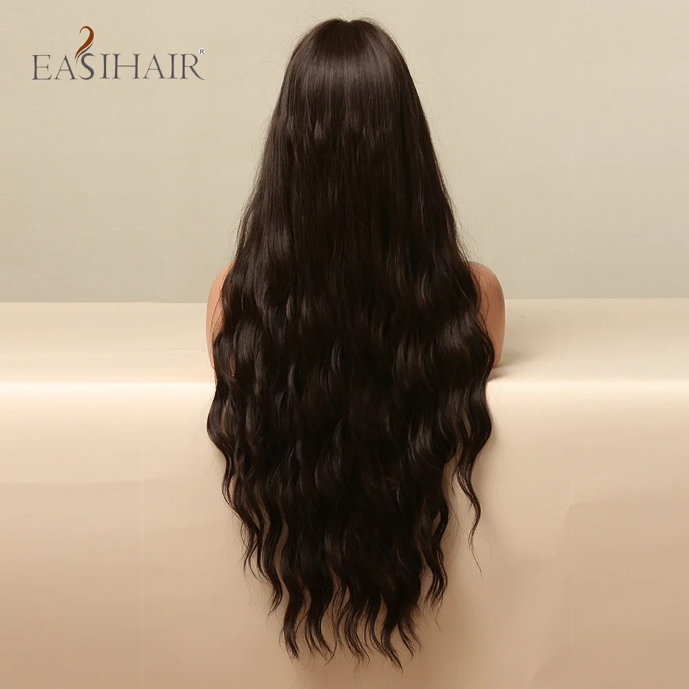 Длинные темно-коричневые кудрявые синтетические парики EASIHAIR с боковым челом термостойкие парики для женщин Повседневные Вечерние парики для косплея Натуральные Искусственные волосы