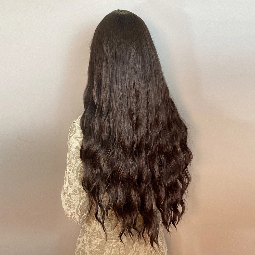Длинный волнистый темно-коричневый парик с челкой, термостойкие син...