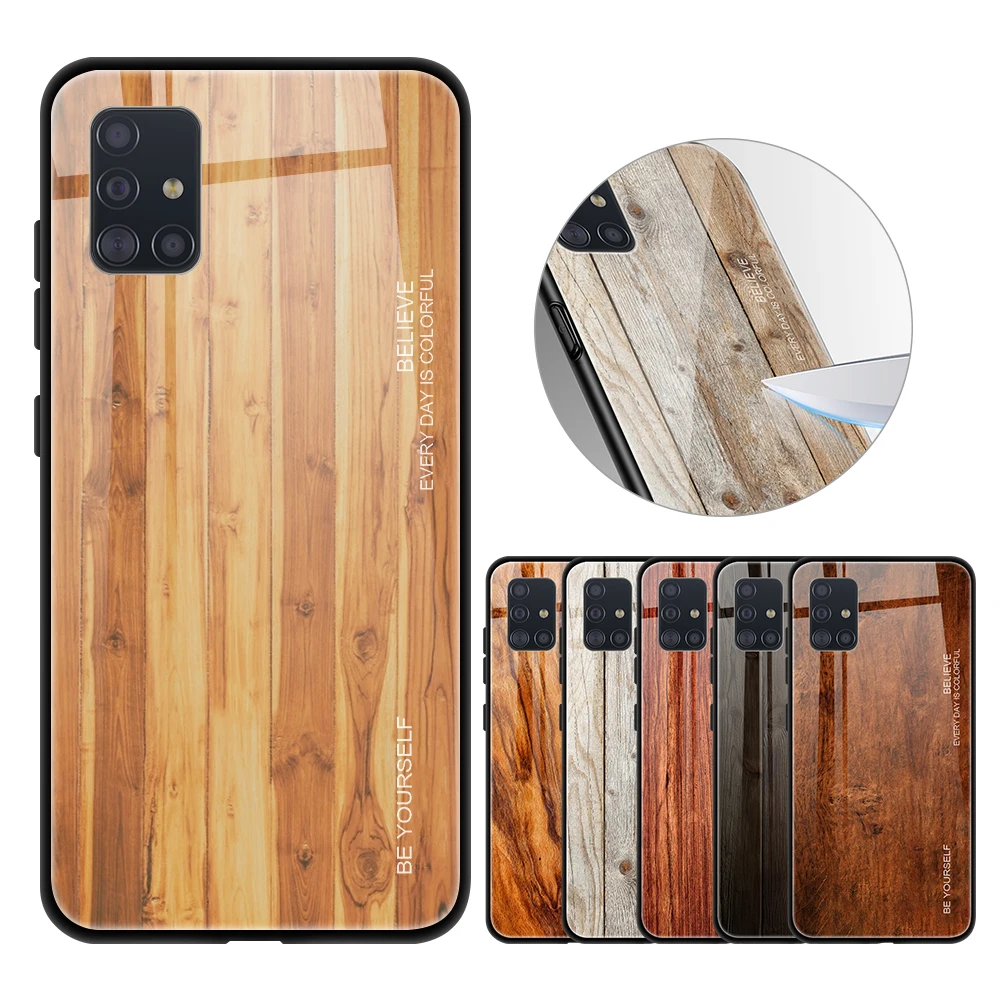 Чехол из закаленного стекла для Samsung Galaxy A72, A52, A32, A42, A12, A02S 5G, чехол с отделкой под дерево для Samsung A70, A50, A51, A71, A515F, A715F