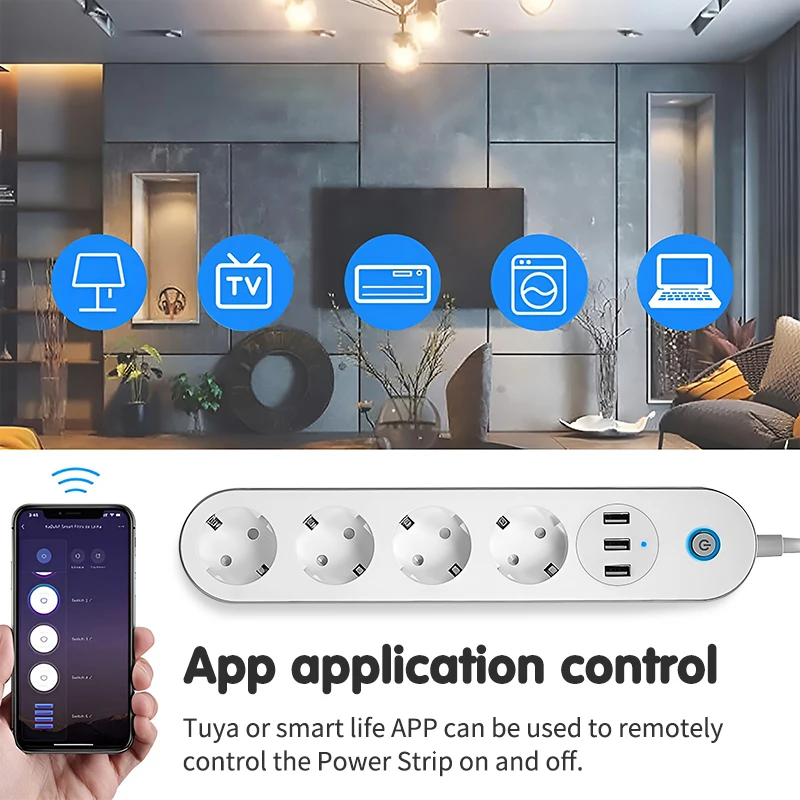 【APP remote control】 Tuya или smart life APP можно использовать для удаленного управления блоком питания вкл и ВЫКЛ. Вы можете видеть и контролировать открытое или закрытое состояние полосы питания из приложения, когда вы находитесь вдали.