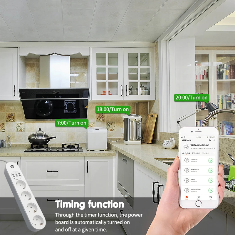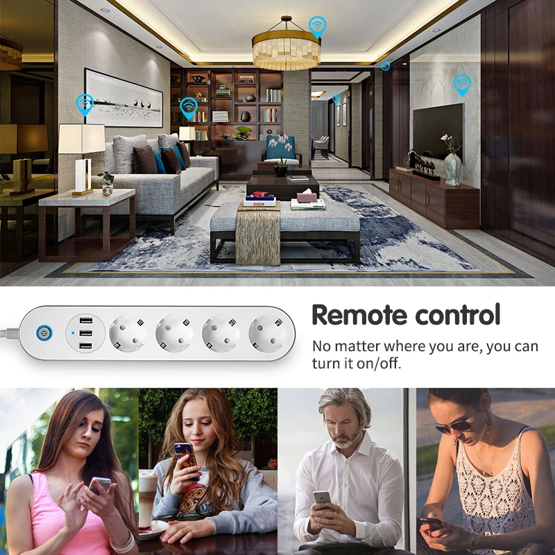 Умный удлинитель Tuya с европейской розеткой, Wi-Fi, USB-розетка для зарядки, удаленный таймер, голосовое управление, работает с Alexa Google Home