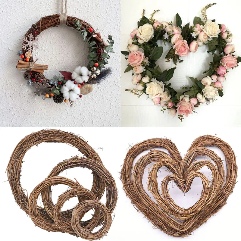 8-30cm круглая любящее сердце натуральный ротанг венок стволовых кольцо ветка гирлянда для Одежда для свадьбы, дня рождения Декор поставки Рождественский подарок