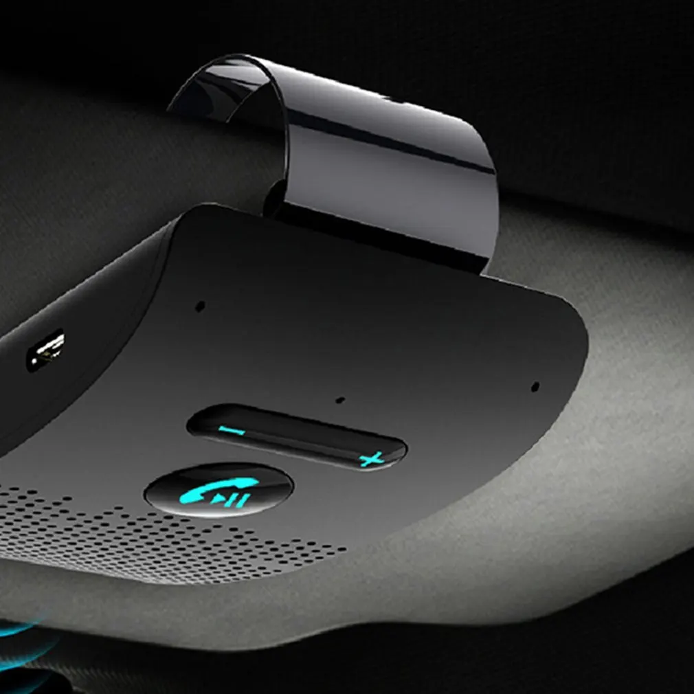 Автомобильный комплект громкой связи 4,2 дюйма, зажим на солнцезащитный козырек, беспроводной аудиоприемник, динамик, динамик для телефона, музыкальный плеер, два микрофона