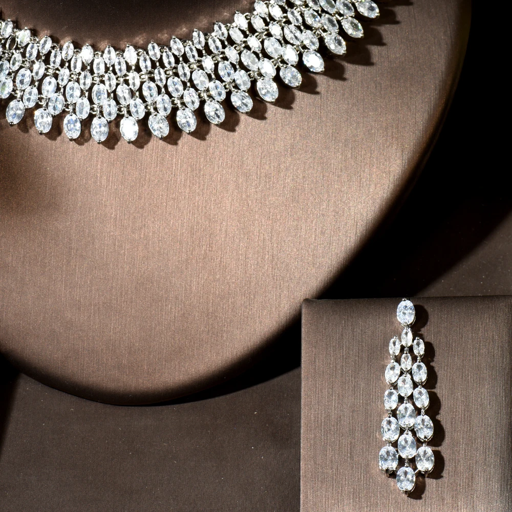 HIBRIDE Роскошный прозрачный кристалл циркония серьги и ожерелье на...