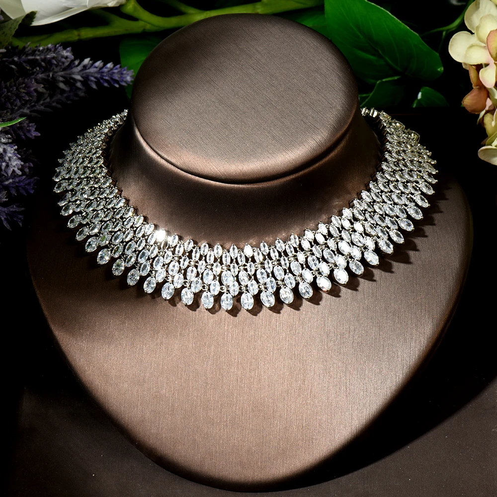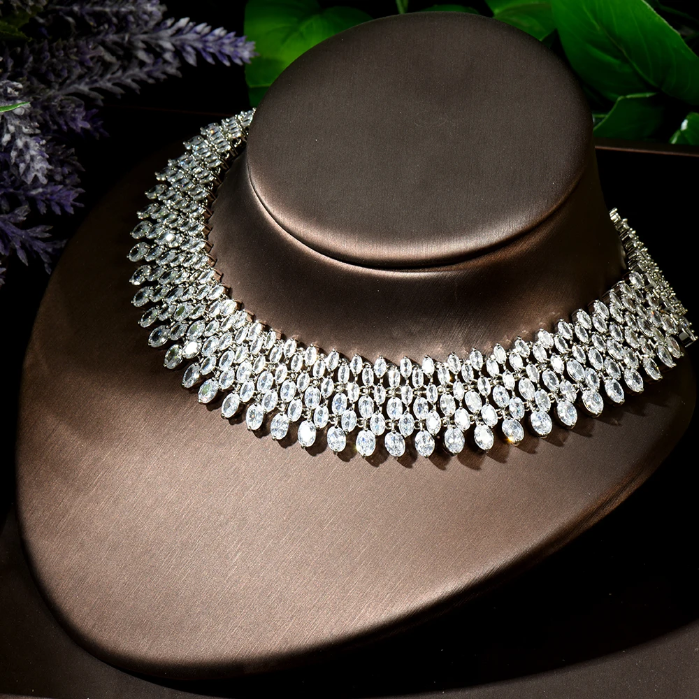 HIBRIDE нигерийский тренд капли воды Ювелирные наборы полный кубический циркон женское свадебное платье колье ожерелье серьги ювелирные изделия N-1893