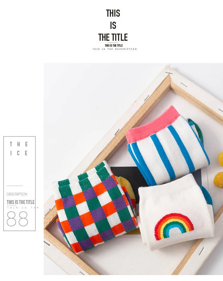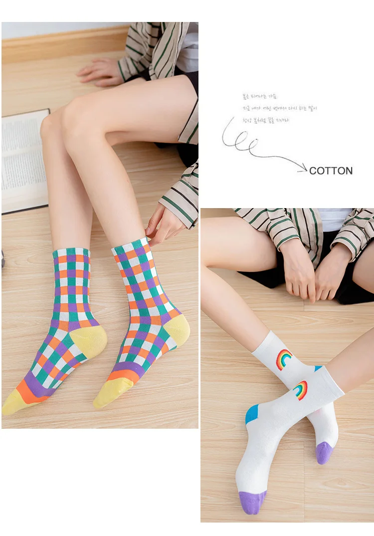 Носки в радужную полоску harajuku kawaii calcetines для женщин skarpetki meias meia chaussette sokken cotton calcetas mujer