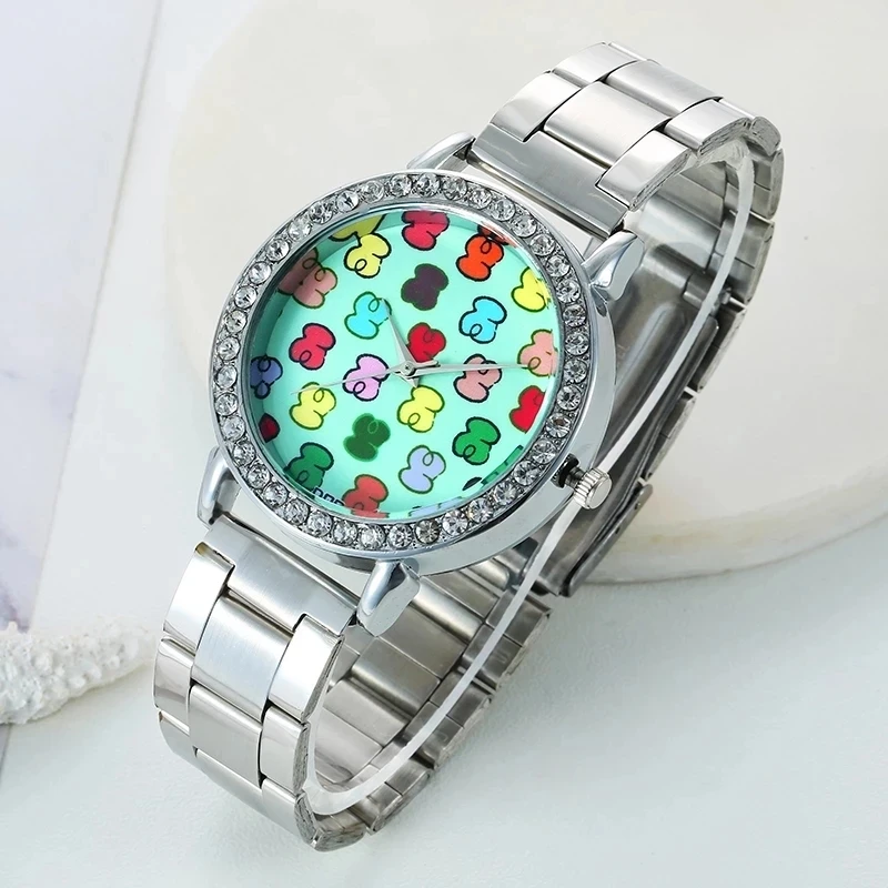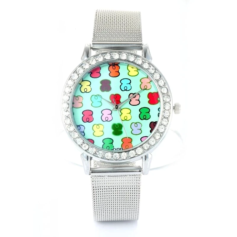 Часы наручные женские с медведем, роскошные модные брендовые, серебристые с браслетом