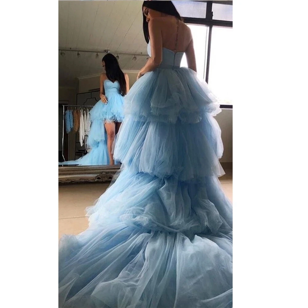 Платье для выпускного вечера, с оборками сердечком, светильник-голубое Тюлевое короткое спереди и длинное сзади, вечерние наряды на выпускной, 2022