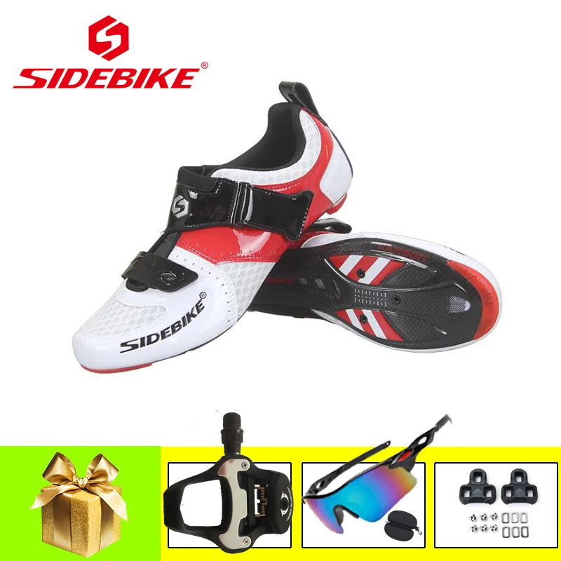 SIDEBIKE/кроссовки из углеродного волокна для шоссейного велосипеда, с SPD-SL, педали, ультра-светильник, самоблокирующийся дышащий триатлон, обувь для езды на велосипеде
