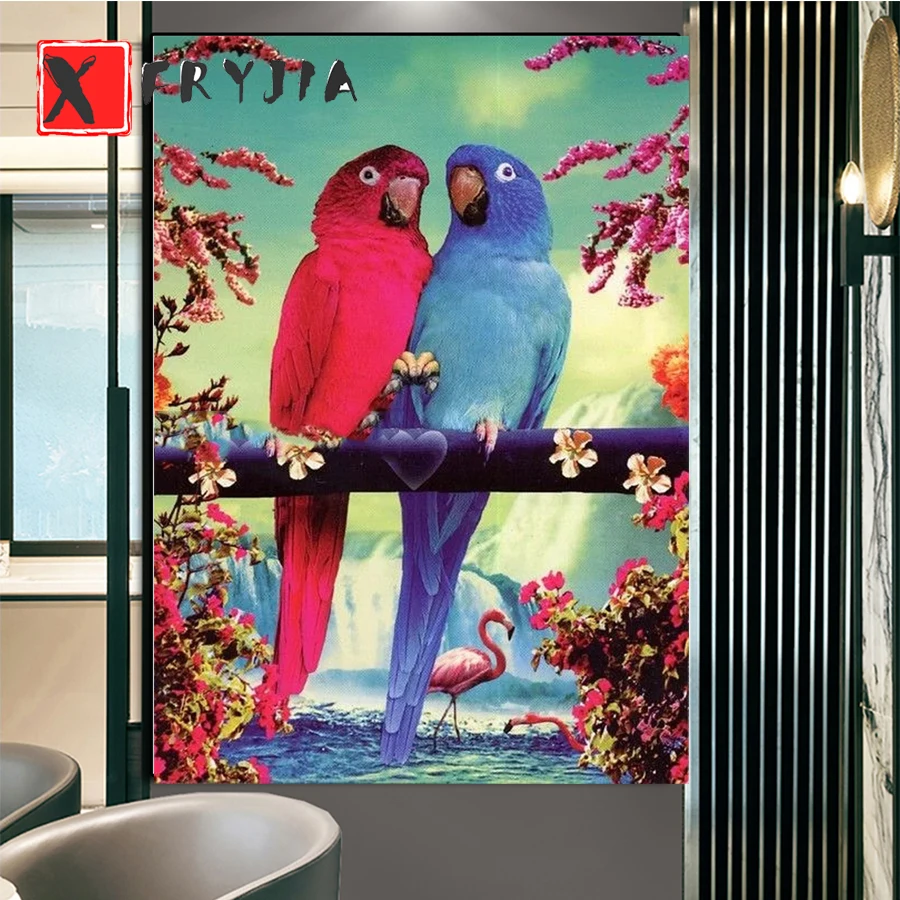 Алмазная живопись сделай сам, два попугая, алмазная вышивка, 5d мозаика, Алмазная мозаика, вышивка крестиком, украшение комнаты