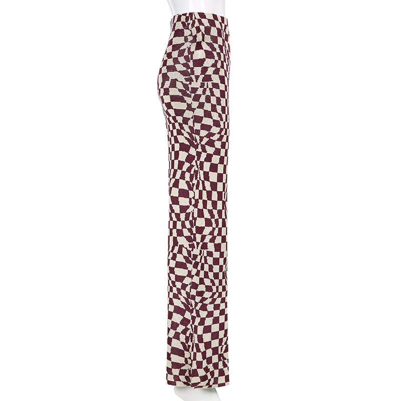 Женские брюки в клетку, с высокой талией, в стиле Харадзюку