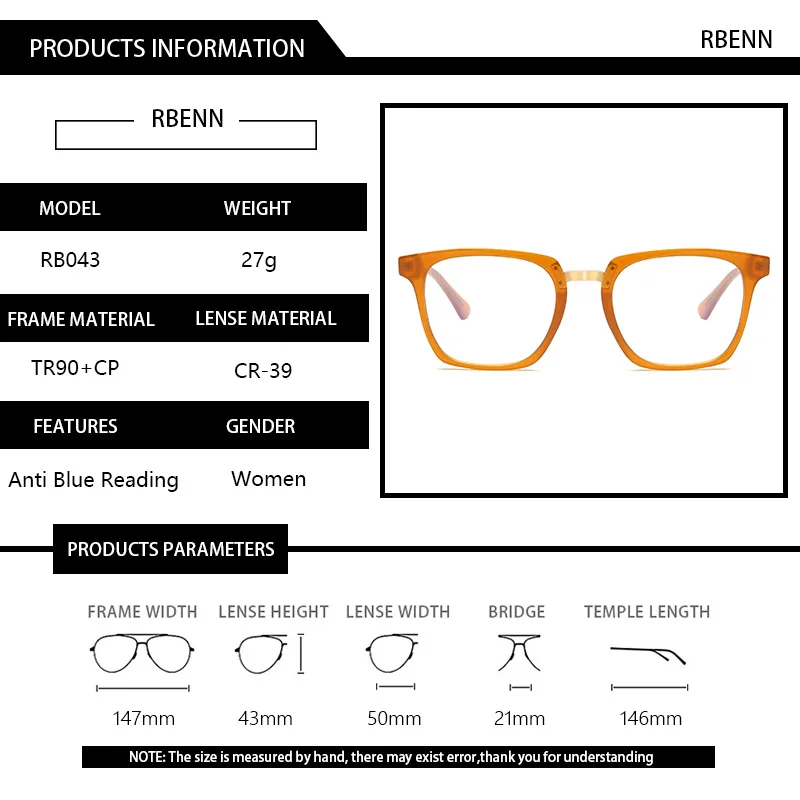 RBENN квадратная большая рама компьютерные очки для чтения с защито...