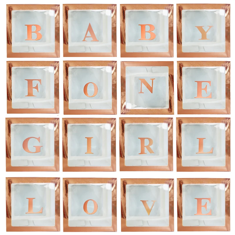 Baby Shower коробка шар из розового золота A-Z письмо прозрачная коробка первой 1st День рождения украшения детская футболка для мальчиков и девочек, партия подарочная коробка