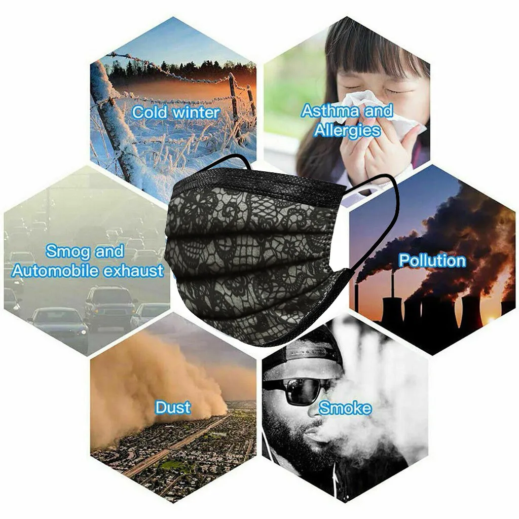 50 шт взрослые модные кружевные одноразовые защитные трехслойные дышащие маски для лица