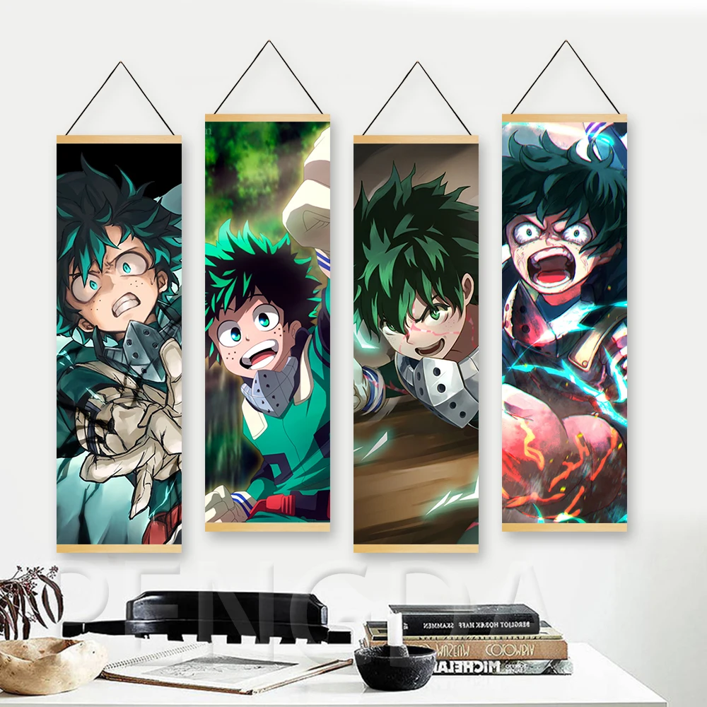 Домашнее украшение, настенное искусство в скандинавском стиле, Картина на холсте с мотивом фильма Моя геройская Академия, Висячие свитки из массива дерева, картина HD, аниме плакат