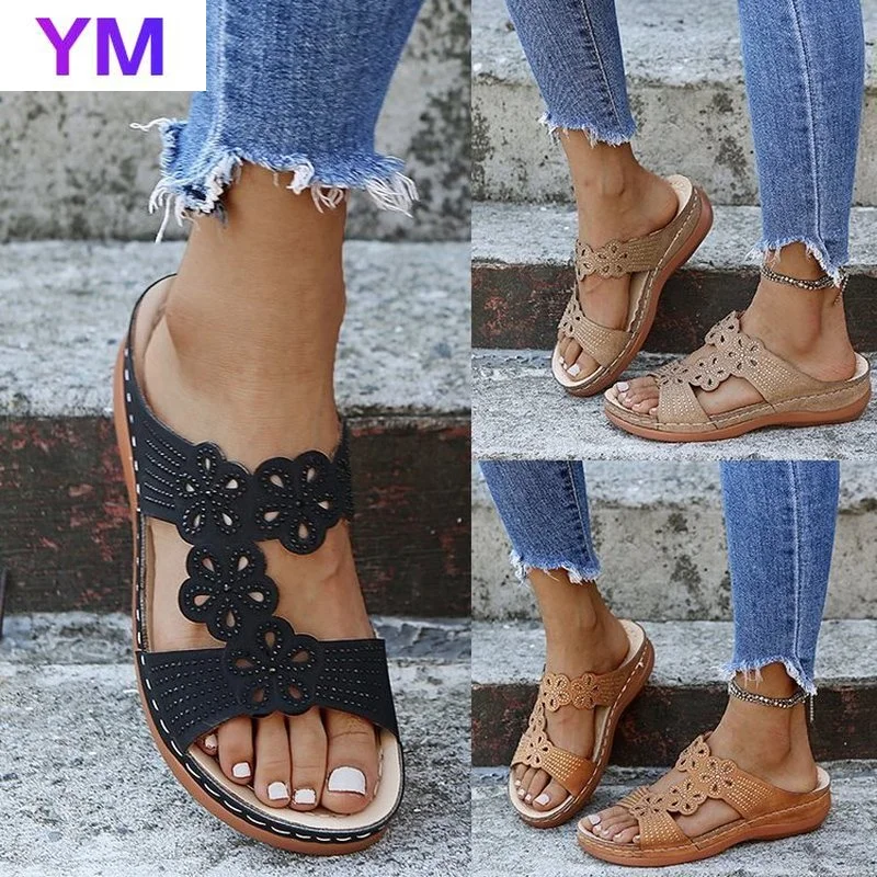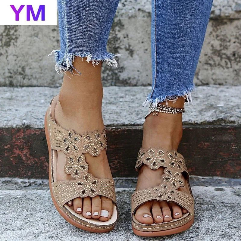 Богемные женские туфли на танкетке 2021, модные женские уличные пляжные туфли на платформе с цветами