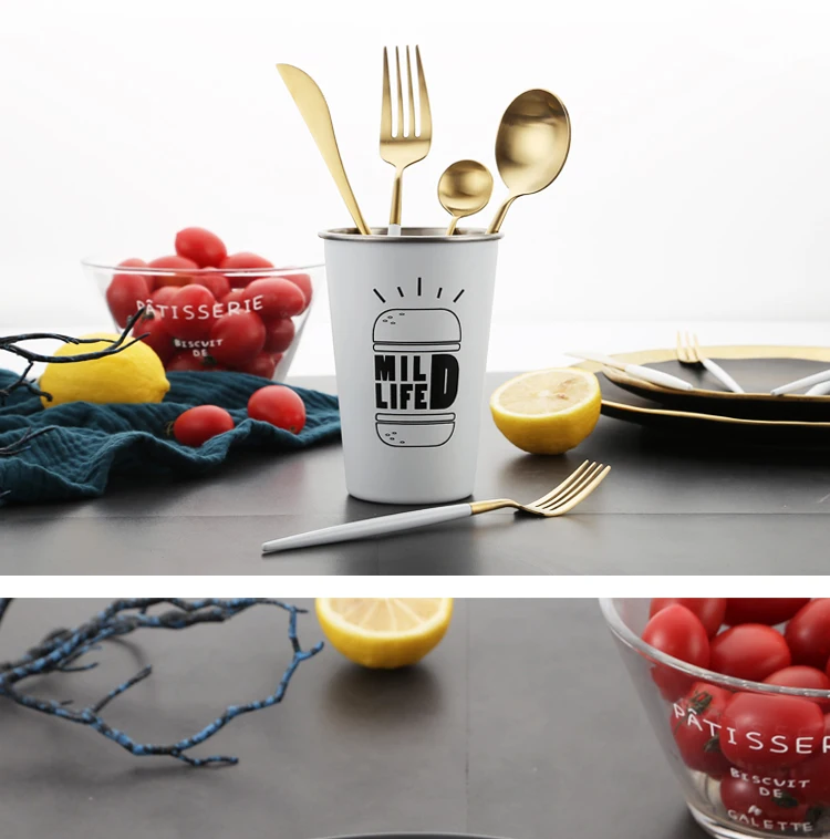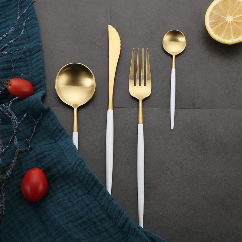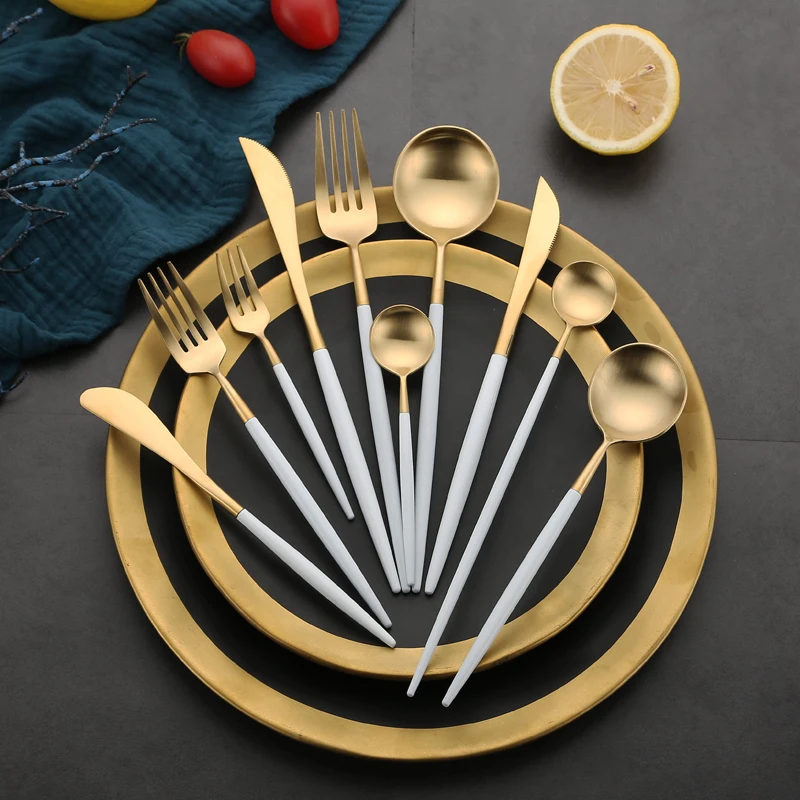 Набор золотой столовой посуды из серебра 304, столовая посуда из нержавеющей стали, набор ножей, ложек, палочек для еды, Западный белый