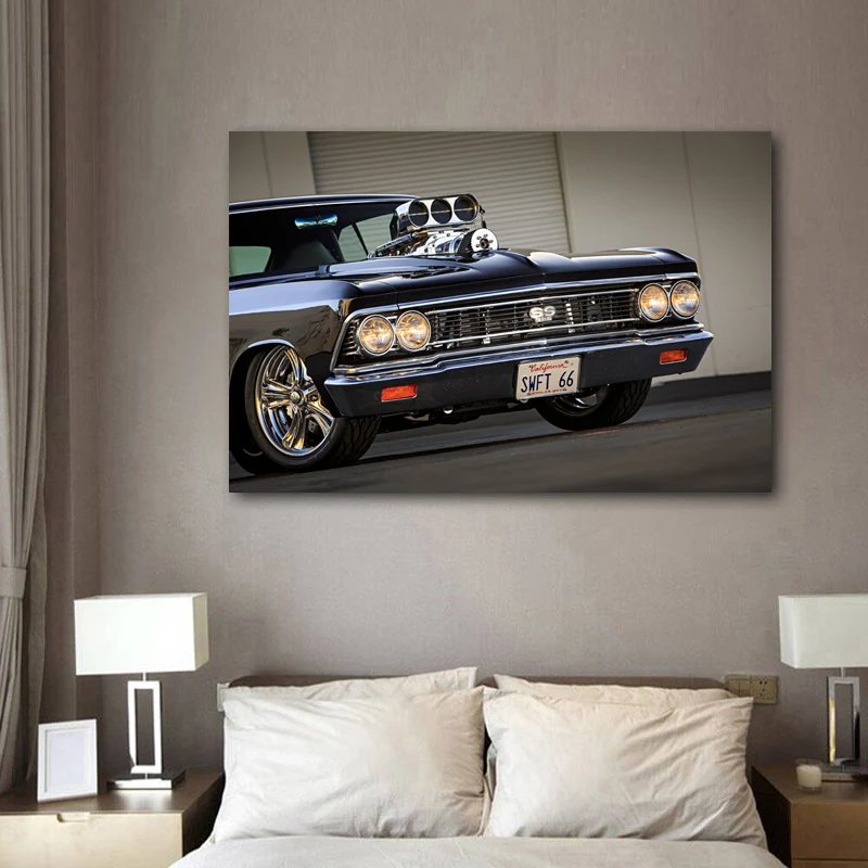 1966 Шевроле горячий стержень мышечный автомобиль картина Настенный декор плакаты холст картины ткань печать Искусство Декор гостиной