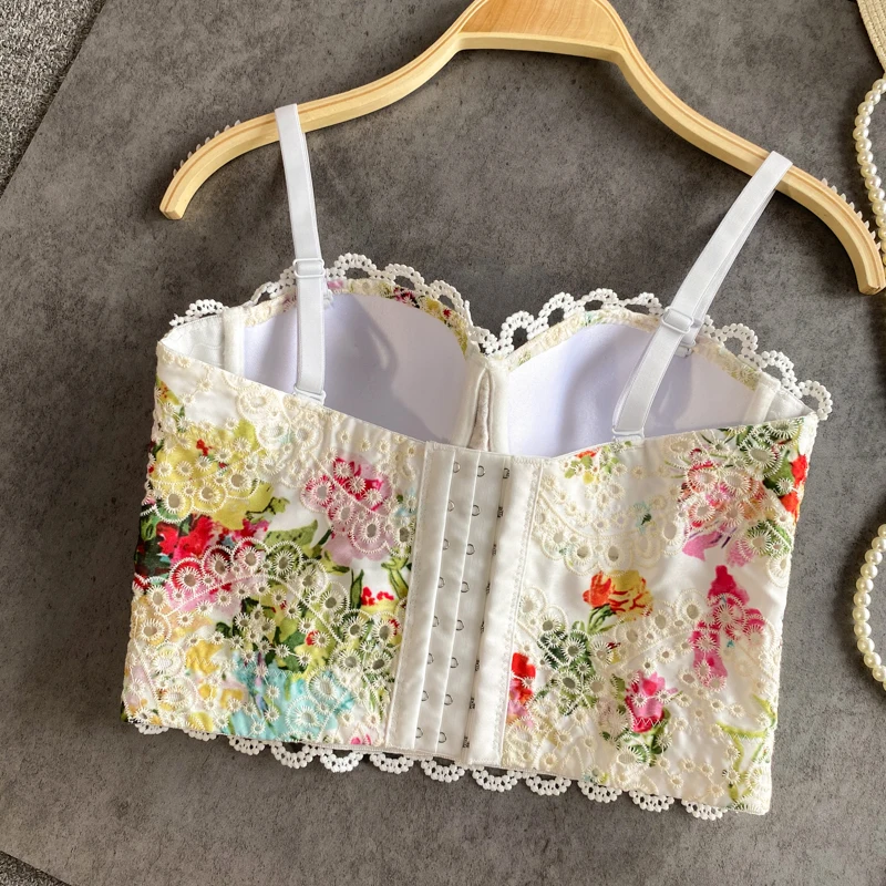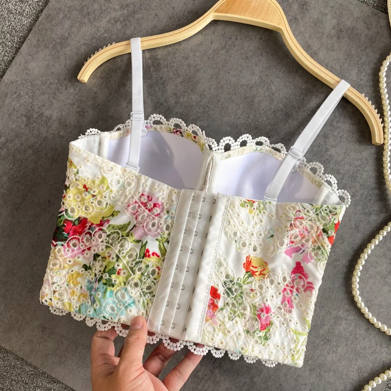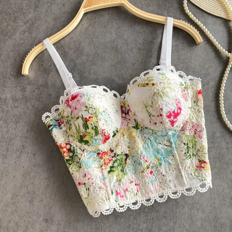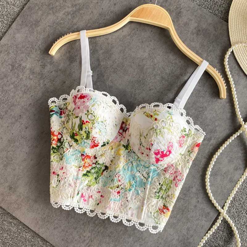 2021 Новое поступление бюстье с цветочным принтом Корсет кружевная майка на бретелях сексуальный короткий бюстгальтер летний белый корсет Топ праздничный Женский клуб