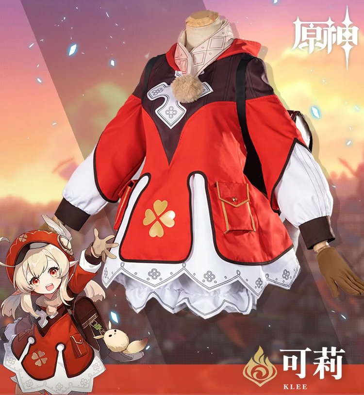 Женский костюм для косплея по мотивам игры Genshin Impact Klee, костюм из париков и туфель, униформа для вечеринки, карнавальные костюмы на Хэллоуин, полный комплект
