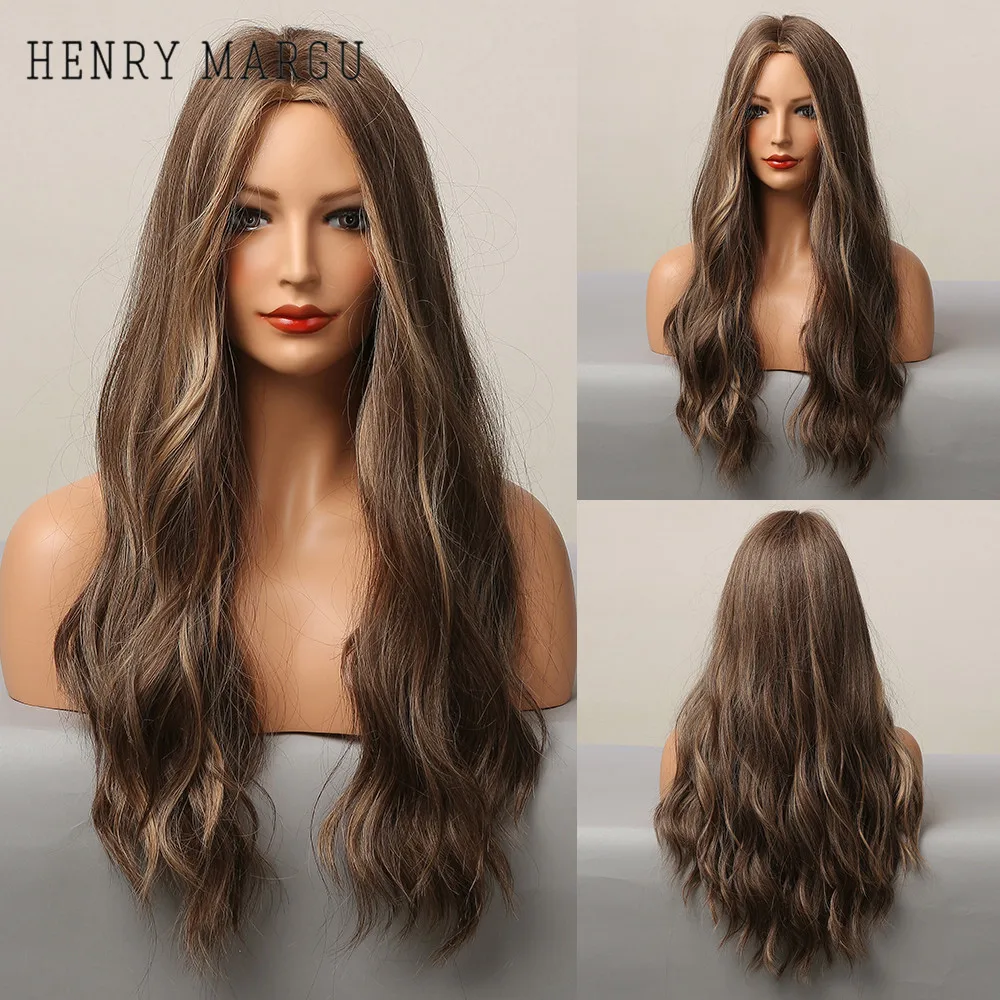 Генри MARGU эффектом деграде (переход от темного к Black Rose красный розовый парик длинные волнистые синтетические волосы парик для Для женщин средняя часть Косплэй Вечерние Повседневные туфли на высоком Температура парик
