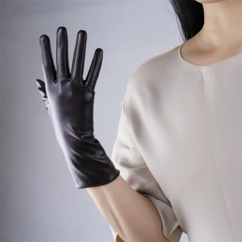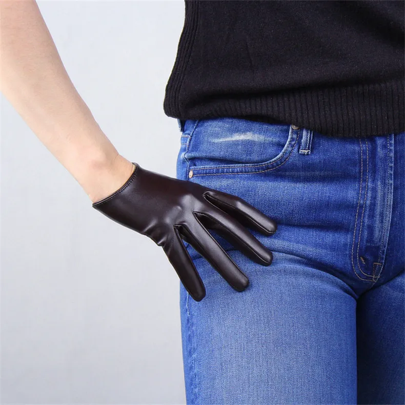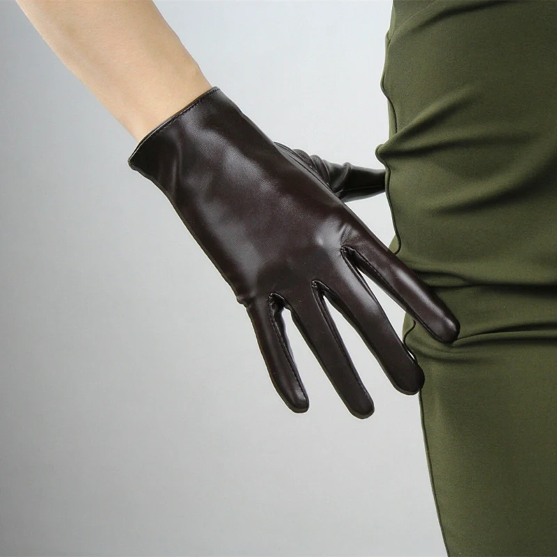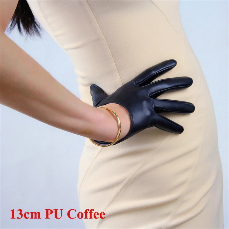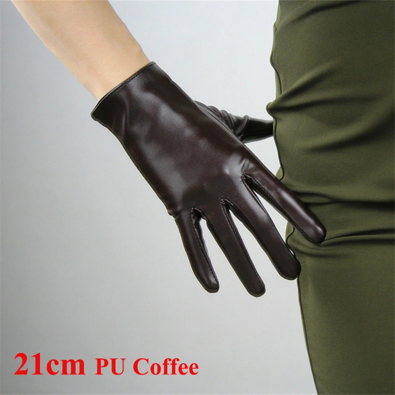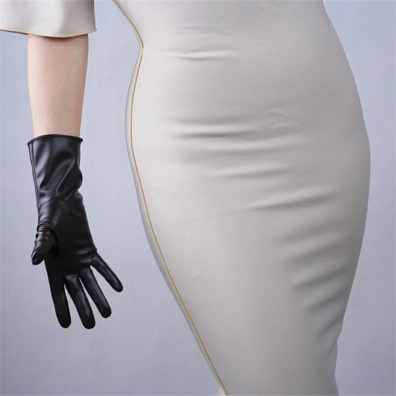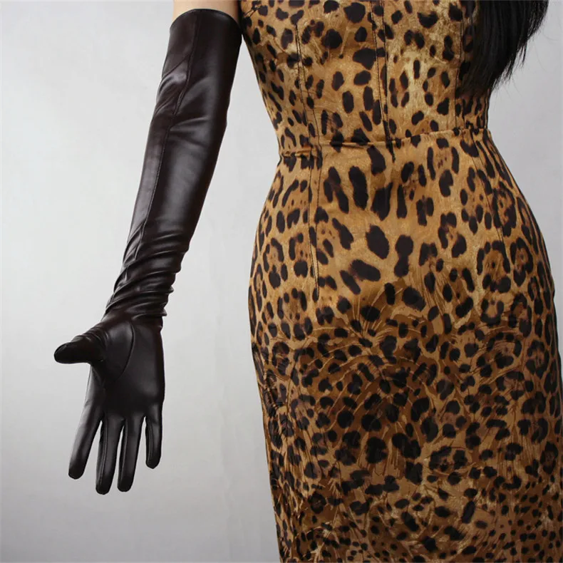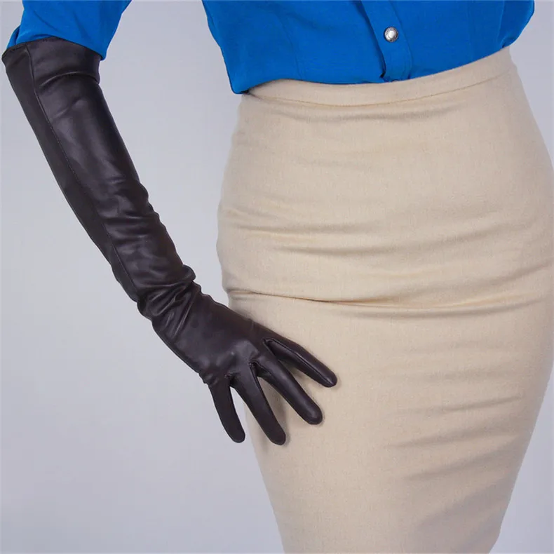 Длинные кожаные женские перчатки 50 см, свободные перчатки из искусственной кожи с большим рукавом, кофейные темно-коричневые женские перчатки WPU315