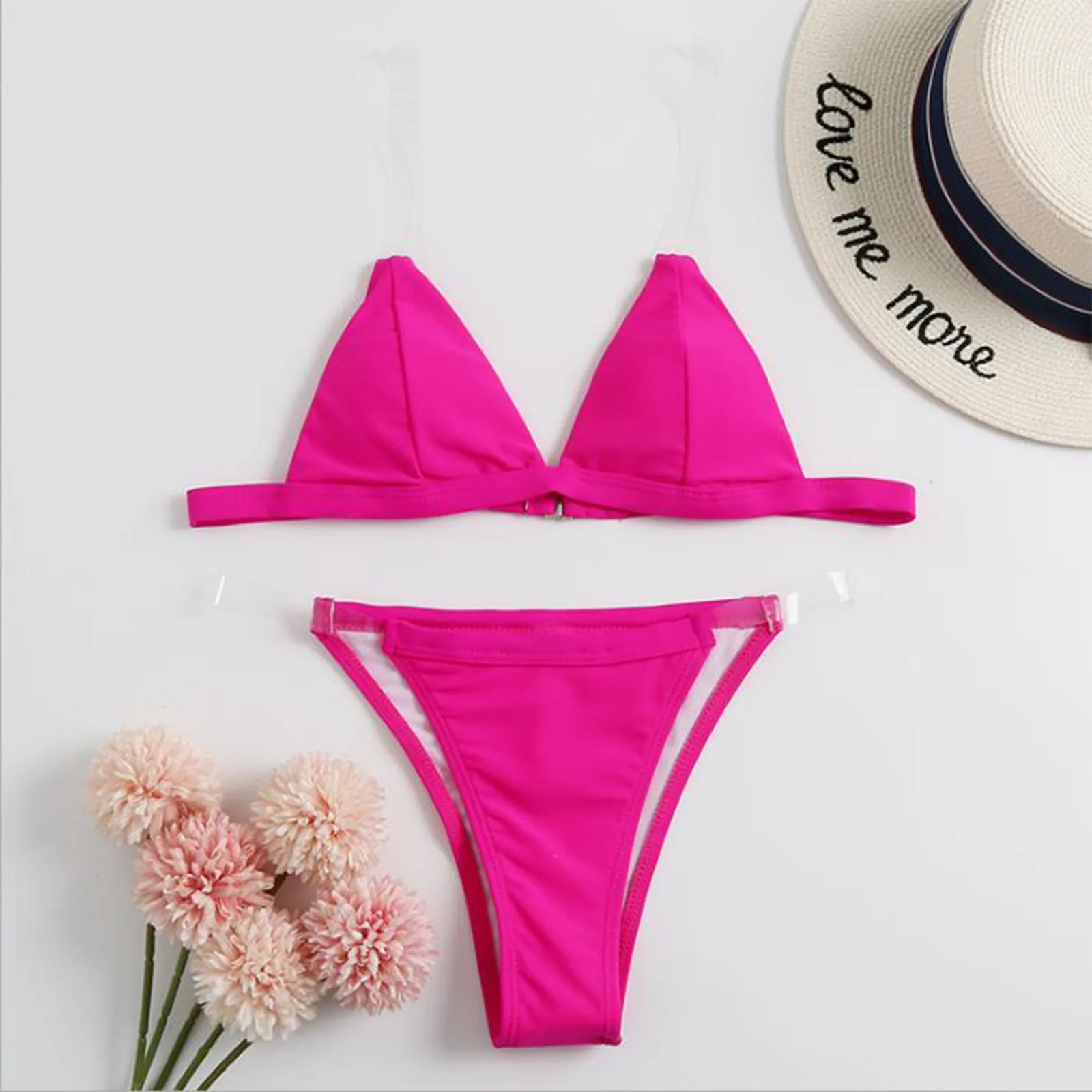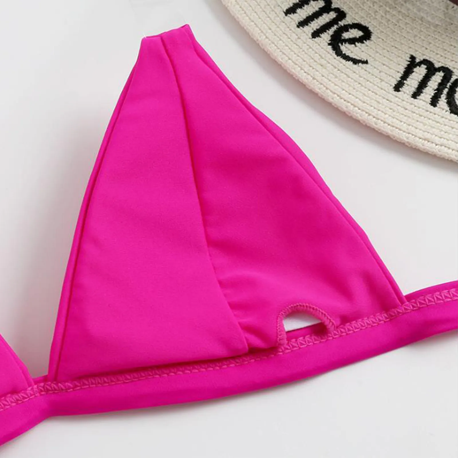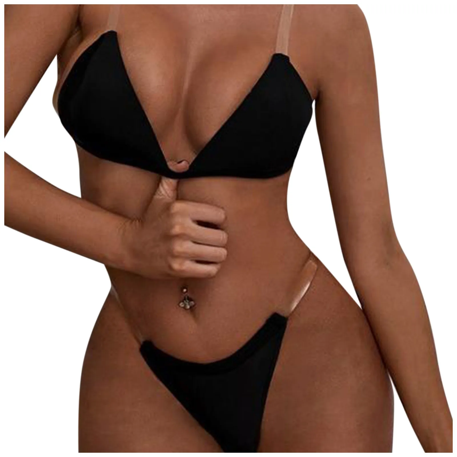 Сексуальный однотонный купальный костюм, женское бикини, купальник с пуш-ап, комплект бикини, Бразильский купальный костюм из двух предметов, женский купальный костюм, лето 2021