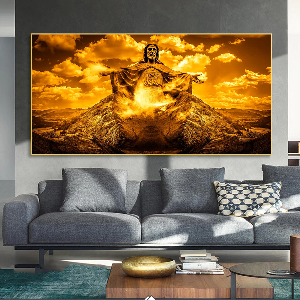 Картина на холсте с изображением золотого Иисуса горы, пейзаж с христианской тематикой, Настенный декор для гостиной, художественные плакаты и принты