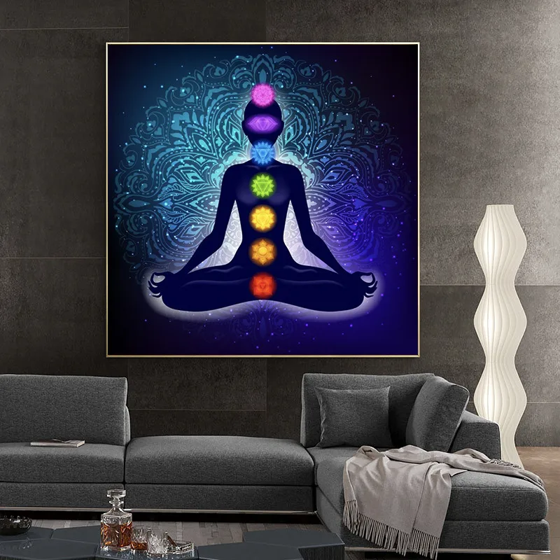 Картина на холсте, художественные плакаты, принты, индийский Будда, медитация, 7 чакр, Йога, спорт, настенное искусство для гостиной, спальни без рамки
