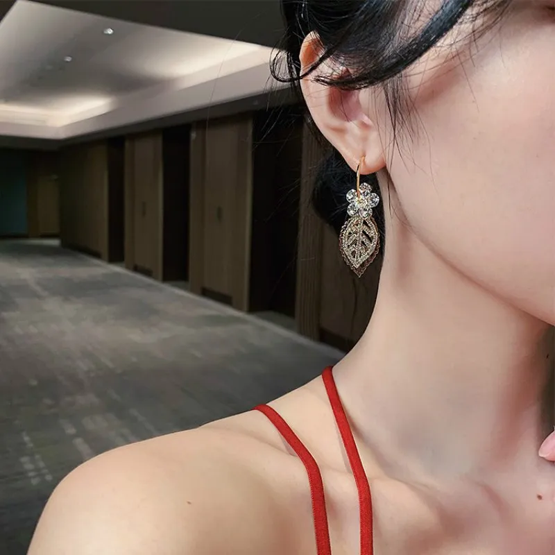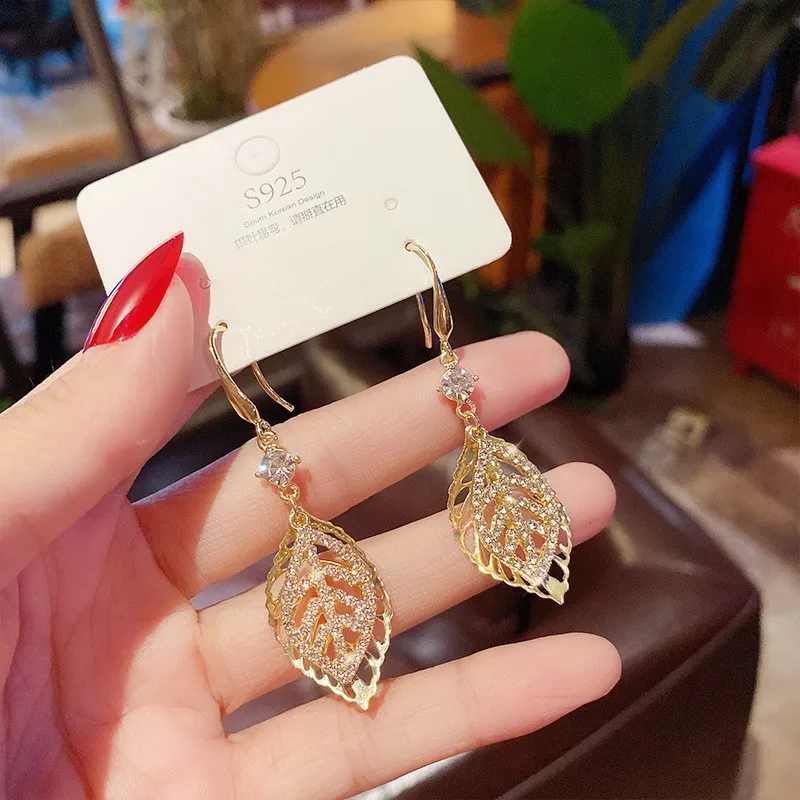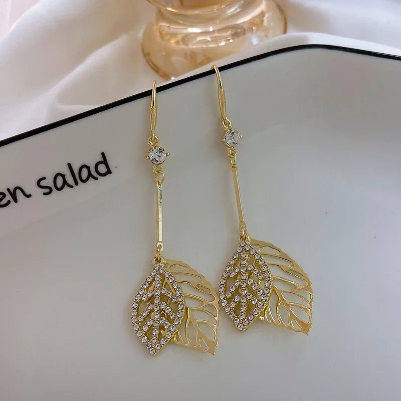 Корейские модные роскошные серьги с золотыми листьями для женщин 20201 Новые блестящие эффектные висячие серьги с кристаллами ювелирные изделия серьги
