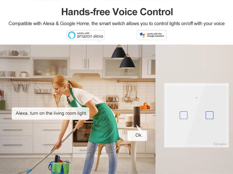 Описание:Все переключатели можно управлять удаленно с помощью телефона, а устройства, подключенные к переключателям, могут работать независимо. Работает с Amazon Alexa и Google Assistant, который позволяет включать или выключать ваши устройства с голосовой командой, идеально подходит для тех, кто должен обрабатывать много домашней работы одновременно. Особенности чувствительных сенсорных кнопок, которые крепятся на простых и стильных переключателях, чтобы обеспечить современное и приятное украшение на любой поверхности стены. Небольшой кран для более легкого управления. Если вы беспокоитесь о том, что ваш ежемесячный счет за электричество перегружен энергопотребителями или хотите включить кофеварку, пока вы сидите на диване, график времени-хороший выбор. Установите время для устройств, и переключатели помогут вам включить или выключить их автоматически. Портной смарт-сцена для ваших приборов. Просто установите событие, чтобы вызвать одно устройство SONOFF или группы устройств с помощью нажатия на вашем телефоне. Ваши устройства не будут работать из-за аномальной сети Wi-Fi, управление локальной сети, следовательно, разработано, чтобы убедиться, что они могут нормально работать.Совместим с функцией IFTTT, переключатели могут взаимодействовать с множеством устройств и услуг, чтобы включить или выключить их. Есть несколько сложных шагов, когда мы начинаем получать доступ к умному дому, для сопряжения, введите учетную запись и пароль, имя и так далее. Управление share обеспечивает быстрый способ, позволяющий вам и вашей семье управлять устройствами вместе. Вы не уверены, выключаете ли нагреватель, когда выходите из дома, Просто вытащите свой телефон и откройте приложение eWeLink, чтобы проверить состояние устройства в режиме реального времени.Характеристики:Модель: T0Стандарт: США/Великобритания/ЕСБанды: 1/2/3 бандыЦвет: белыйВход: AC 100-240V 50/60Hz 2A MaxВыход: AC 100-240V 50/60Hz, 2A/банды, 6A/всего максМатериал корпуса: панель из закаленного стекла + ПКБеспроводной стандарт: IEEE 802,11 b/g/n 2,4GПосылка включает в себя:1 * Настенные переключатели WiFi