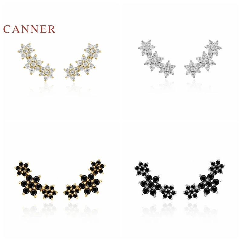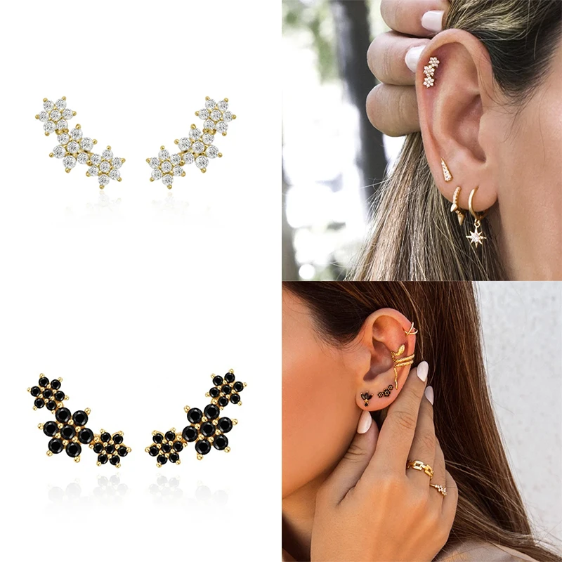 Женские серьги-гвоздики в форме цветка из черного циркония, 100% натуральные серьги из 925 стерлингового серебра серебряный пирсинг пробы, Ювелирное Украшение