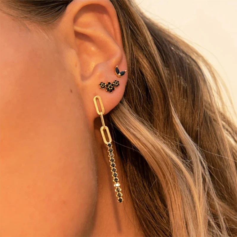 Aide 925 Стерлинговое серебро, черный и белый циркон серьги в виде ...