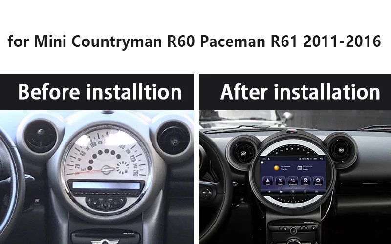Подходит для Mini Countryman R60 Paceman R61 2011-20151. Поддержка операционной системы: Система Android 11,0.2. Поддержка 8 ГБ RAM.(4 Гб RAM)(3 Гб RAM)3. Поддержка 128 ГБ ROM. (64 Гб ROM)(32 Гб ROM)4. Поддержка 8 ядер ЦП.5. Поддержка sim-карты 4G.6. Встроенная функция carplay (3 Гб RAM 32 Гб ROM опция не имеет встроенного carplay).Характеристика:1. Поддержка 9 дюймов сенсорный экран.2. Поддержка Bluetooth музыки и Bluetooth телефона.3. Встроенная GPS навигационная система.4. Поддержка функции двойной зоны.5. Поддержка воспроизведения видео 1080P.6. Поддерживает высококачественный музыкальный выход.7. Встроенный WIFI приемник.8. Поддержка управления рулевым колесом.9. Поддержка usb-входа.10. Поддержка отображения даты и времени.11. Поддержка play store.12. Поддержка управления папками.13. Поддержка графического интерфейса пользователя.14. Поддержка установки приложений.15. Встроенный микрофон или поддержка внешнего микрофона.16. Поддержка функции календаря.17. Поддержка оригинального автомобильного усилителя.18. Поддержка функции обратной камеры (опционально).19. Поддержка DAB + digital radio.(опционально).20. Поддержка системы контроля давления в шинах (TPMS).(опционально).
