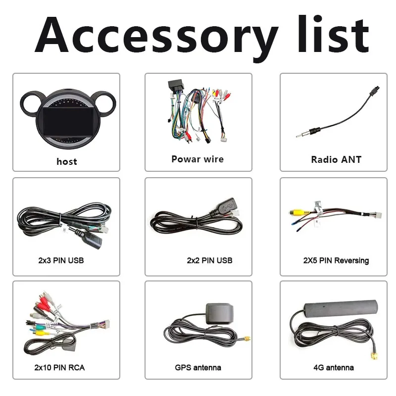Кабель питания: * 1Антенна GPS * 1USB кабель * 2Кабель RCA * 14G антенна * 1Маленький динамик: * 1Винты: 1 комплектИнструкция по установке:Это plug and play для установки, но мы предлагаем вам найти местного профессионального инженера по установке или автомобиля a & V магазин для установки нашего блока в вашем автомобиле, чтобы избежать возможных повреждений приборной панели и самого головного устройства. Конечно, если вам нужна любая поддержка, вы можете свободно связаться с нами.