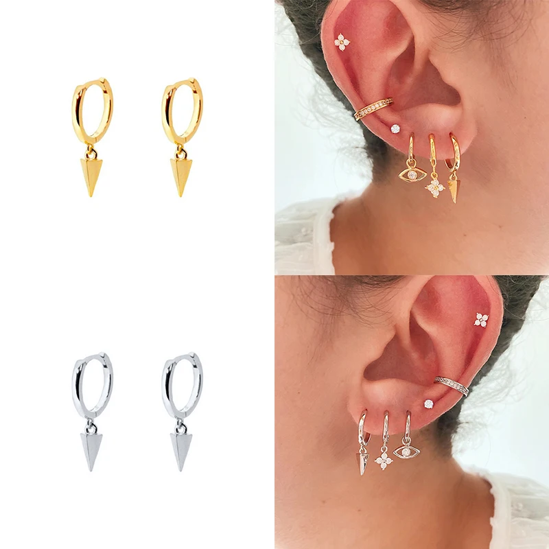 Автоклав с геометрическим рисунком Четырехсторонние конус серьги для Для женщин 100% реальные 925 пробы Серебряные серьги-кольца ювелирные изделия: модные серьги в форме