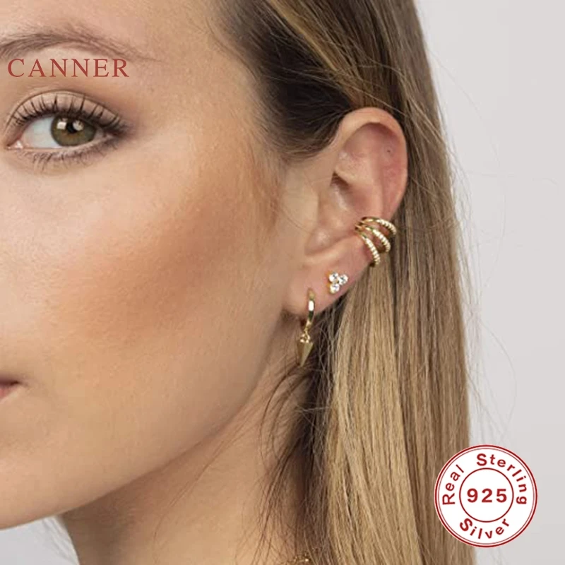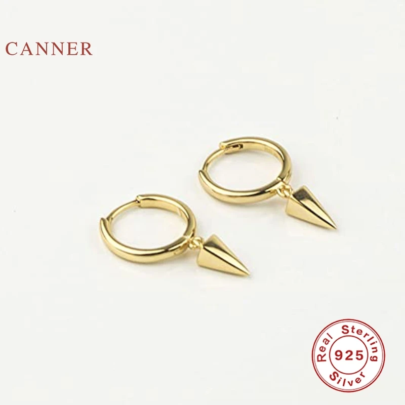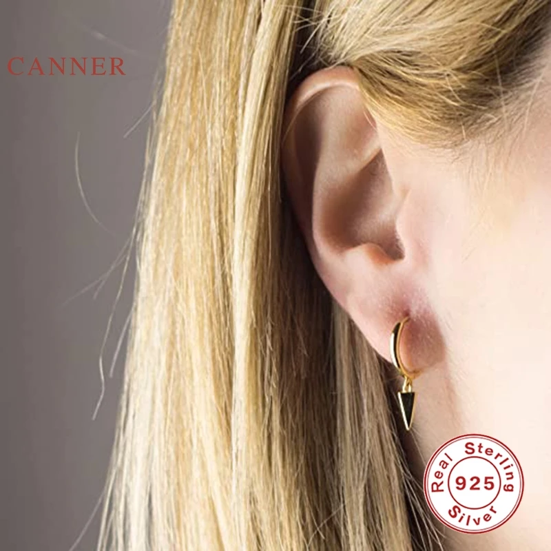 Женские Геометрические Четырехсторонние серьги-конусы CANNER, 100% настоящие 925 пробы серебряные серьги-обручи, ювелирные украшения