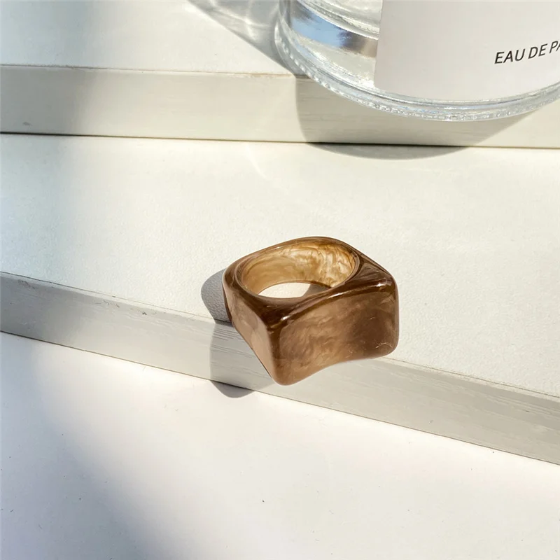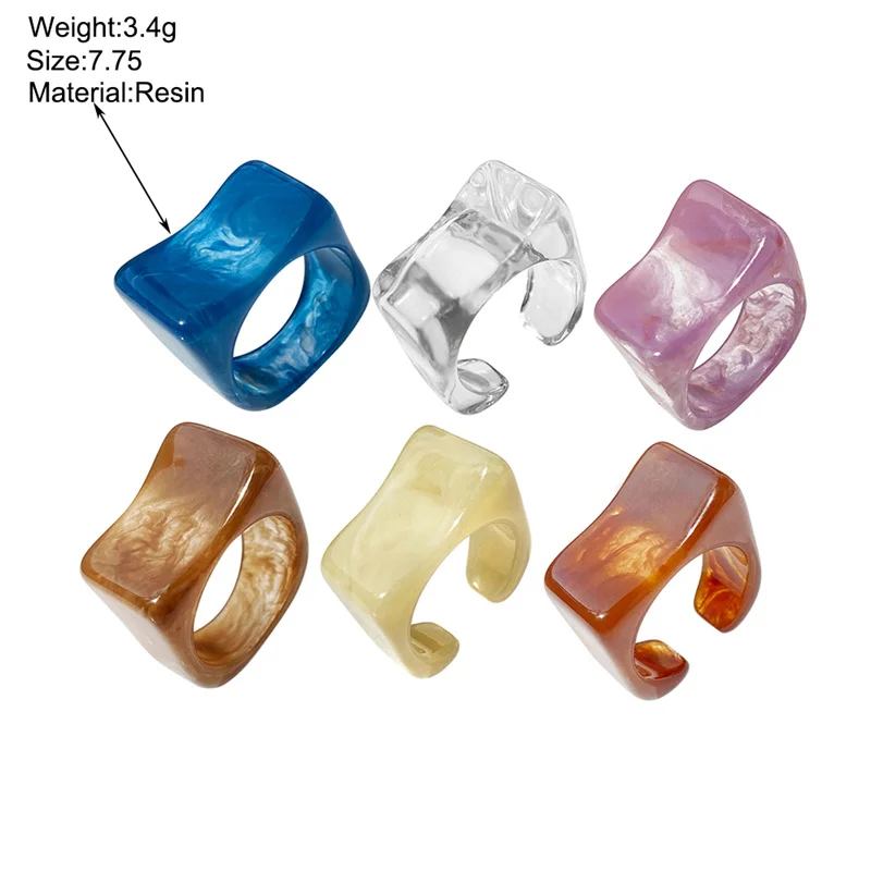 Если я 6 шт.компл. простой толстый Красочный прозрачный акриловый узор из смолы геометрический кольца оригинальной формы для женщин винтажные украшения